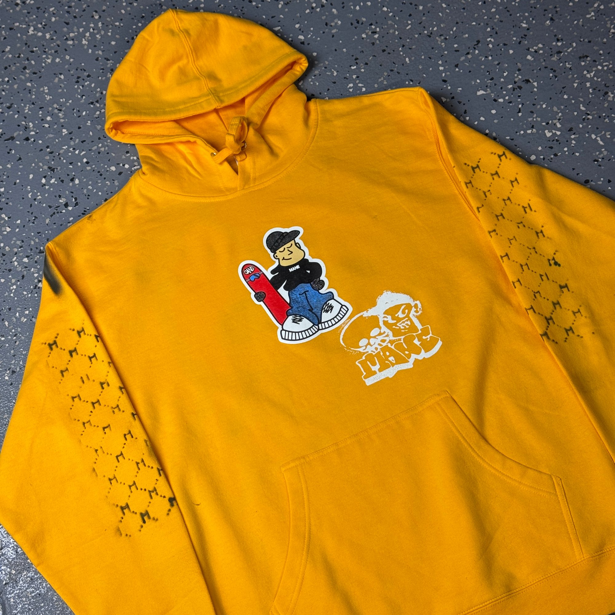 5 color dang print, Tony print typewriter print, and airbrushed skull on the back.
