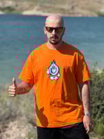 Flame Boi but he is blue so he's super hot fire. 3 color screenprint on 100% cotton orange tee. Ready 2 Ship!