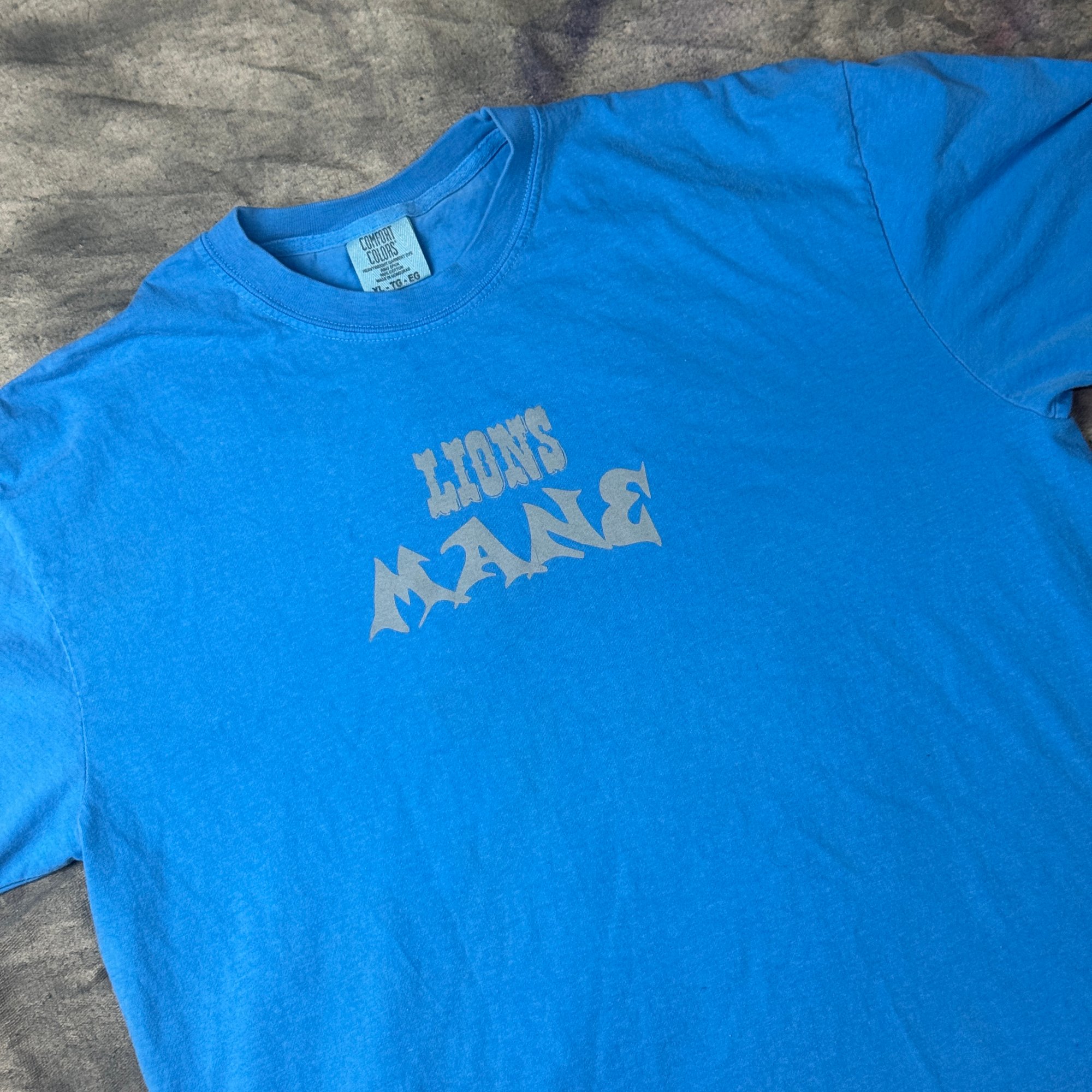 Let's go Lions. Grey ink on 100% cotton garment dyed blue tee. Please allow 2-3 weeks for production and shipping.