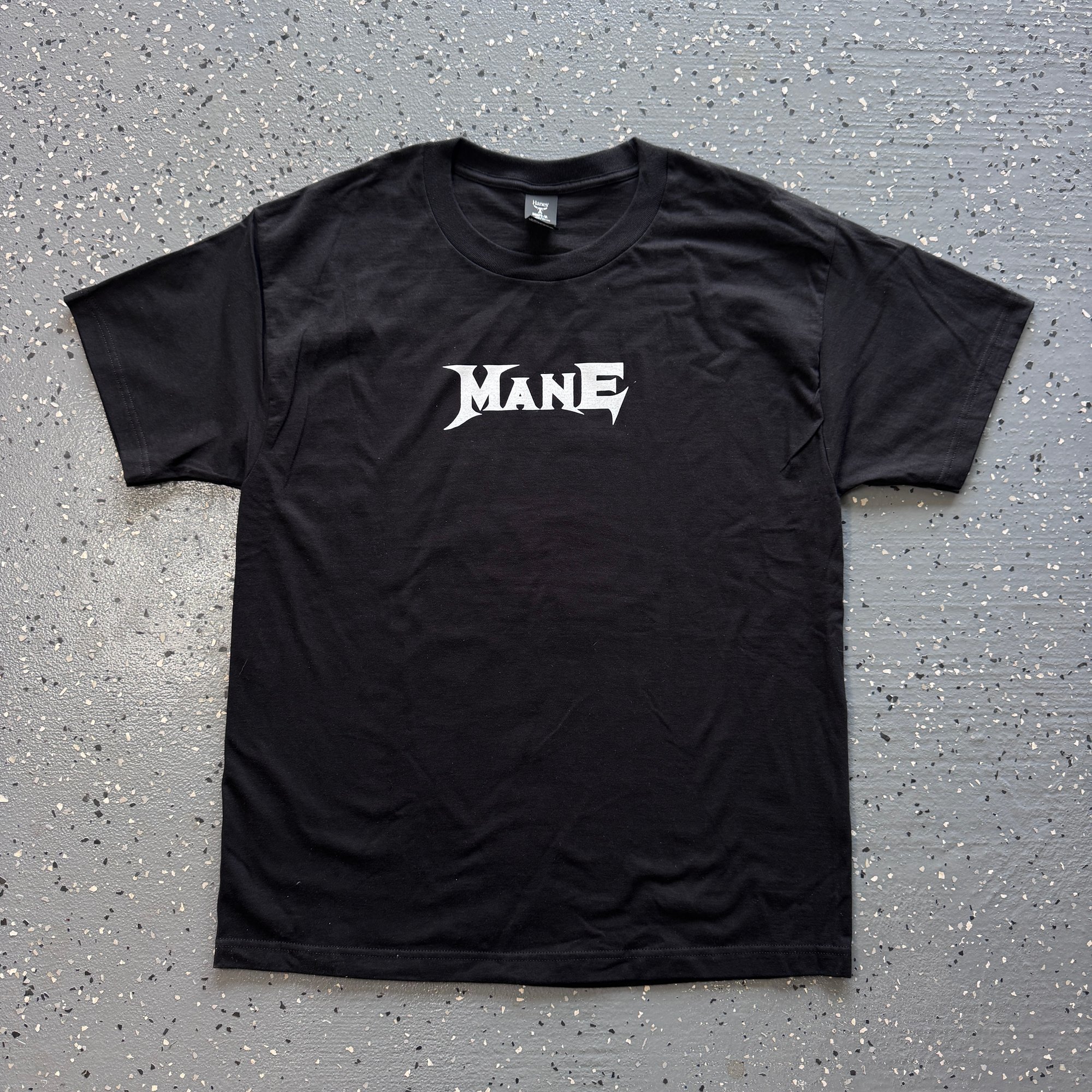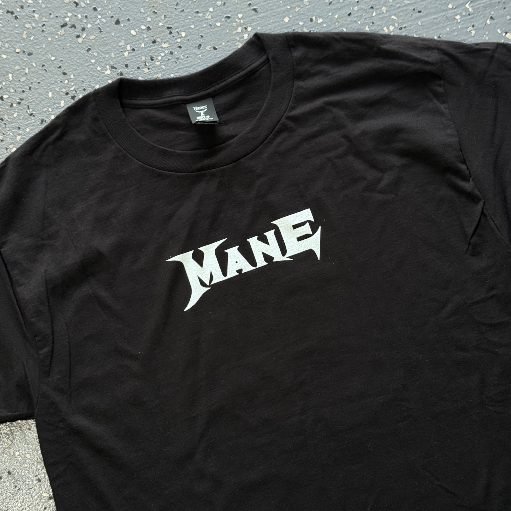 White ink on heavyweight beefy Black tee.