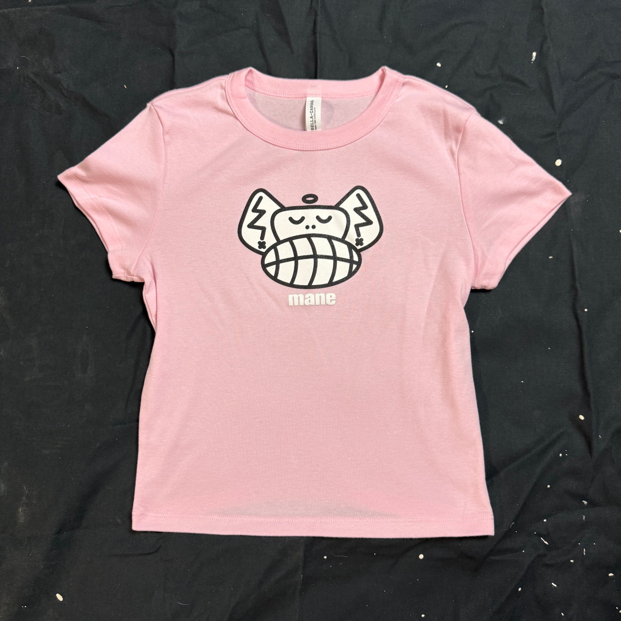 2 color print on pink baby tee.