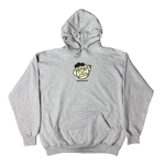Yellow and Black ink on 8 oz midweight Heather Gray hoodie.