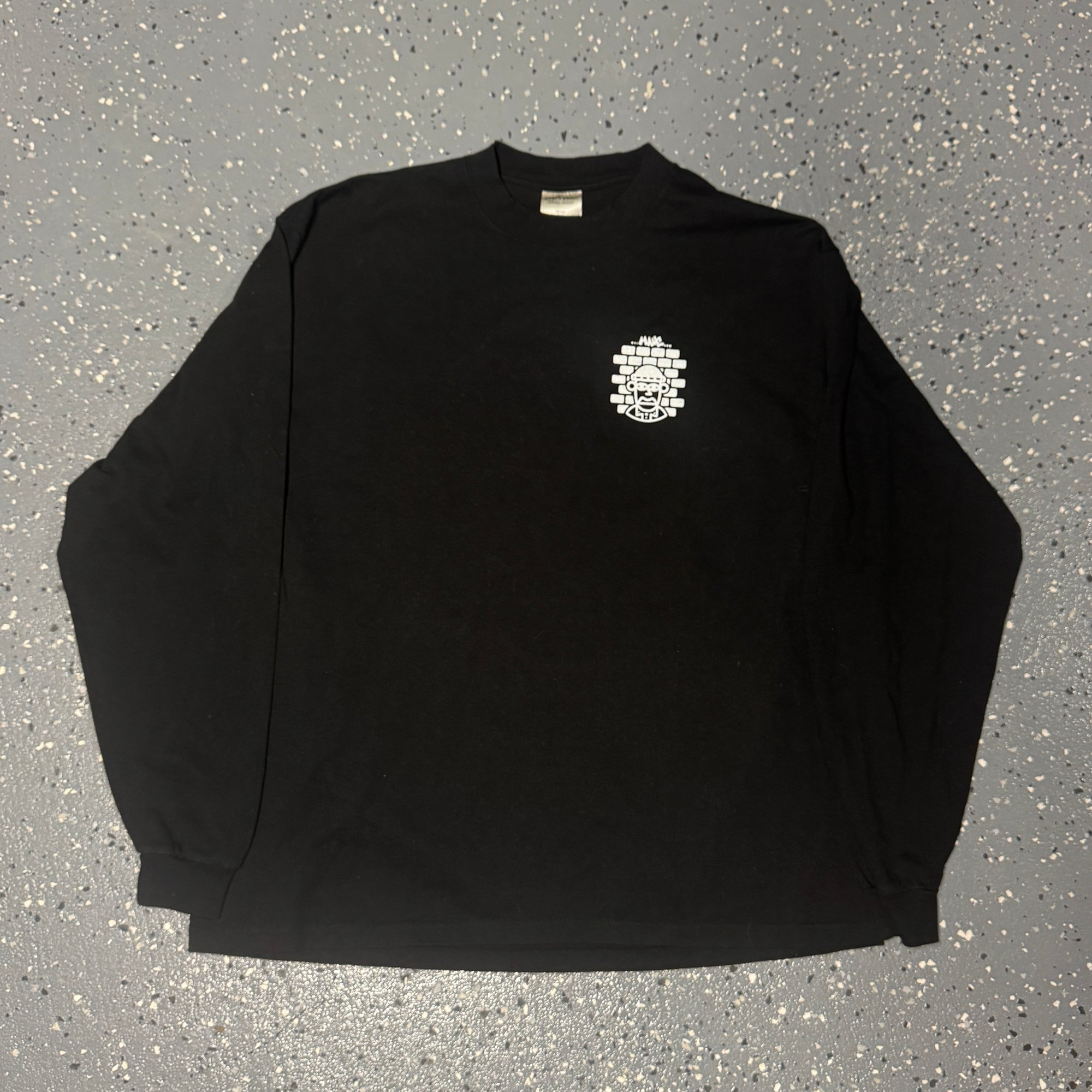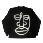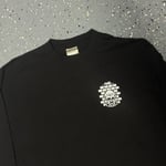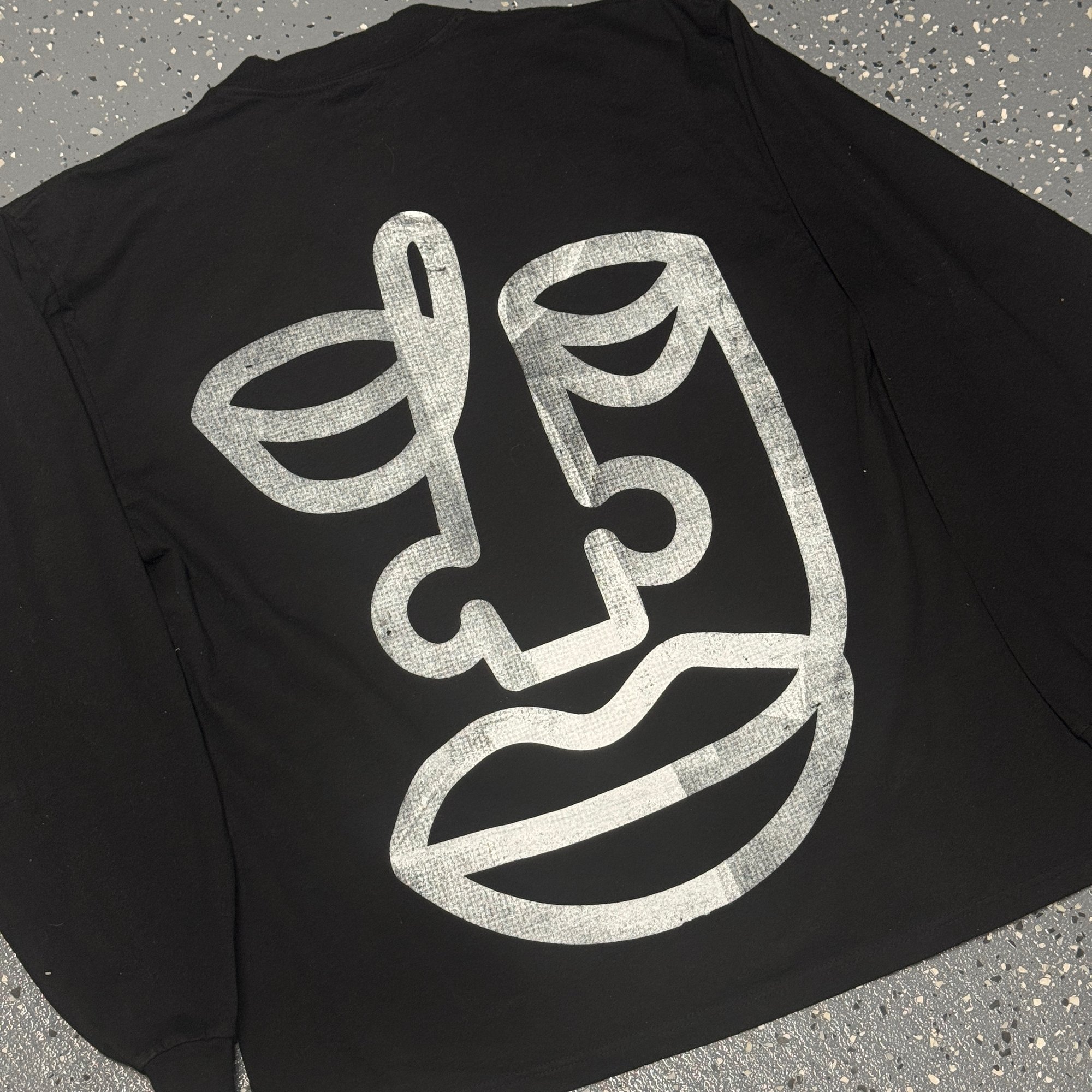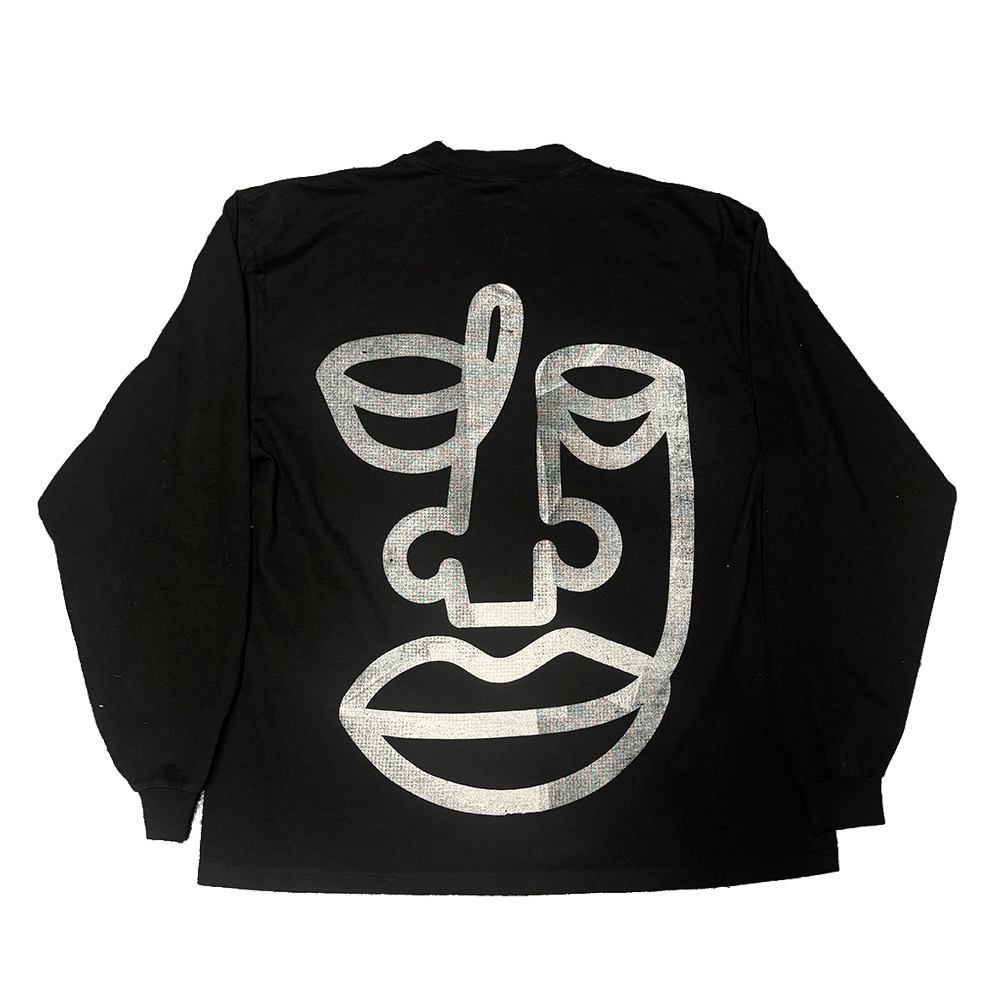 White ink on black heavyweight cotton long sleeve tee.