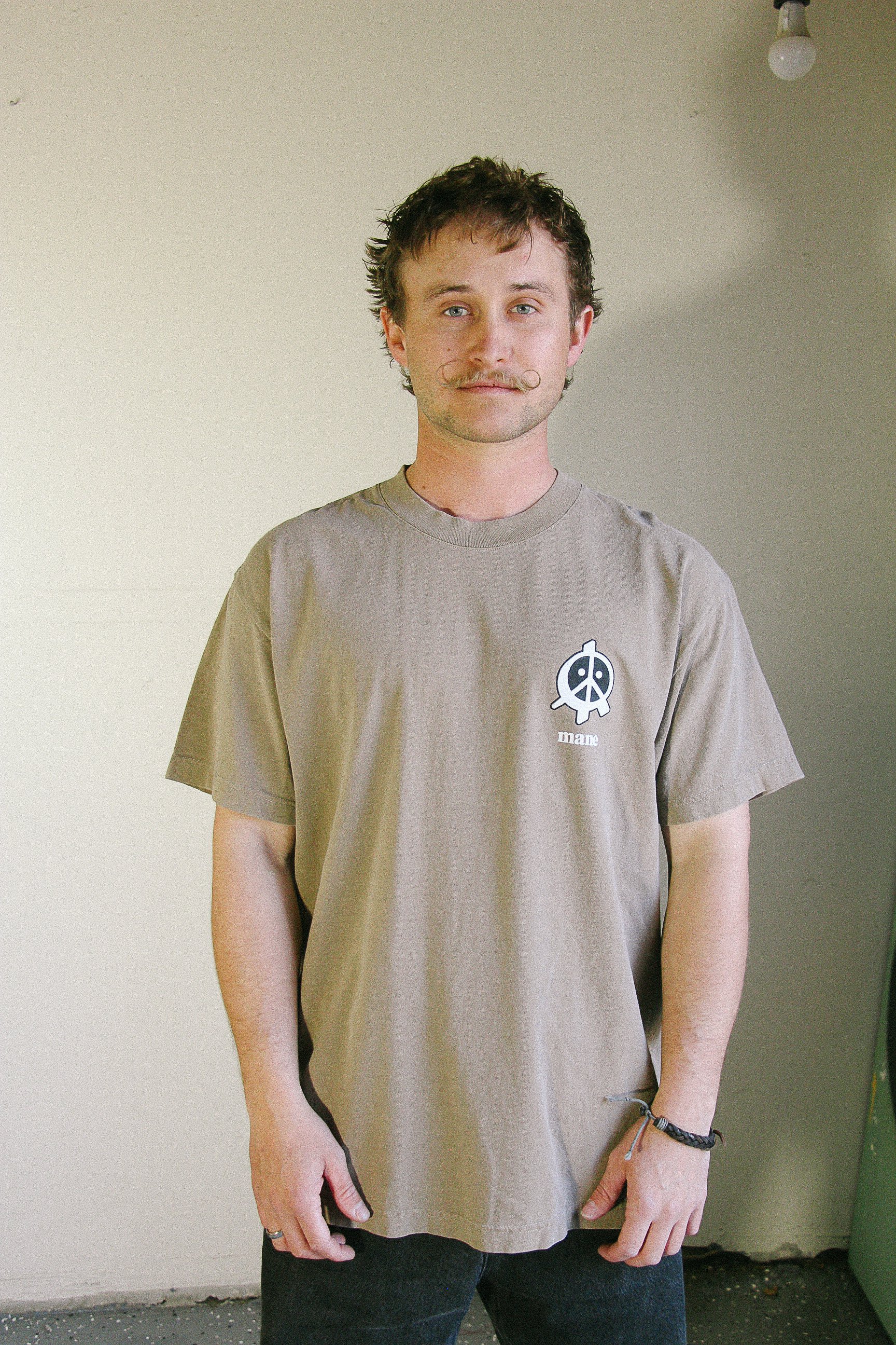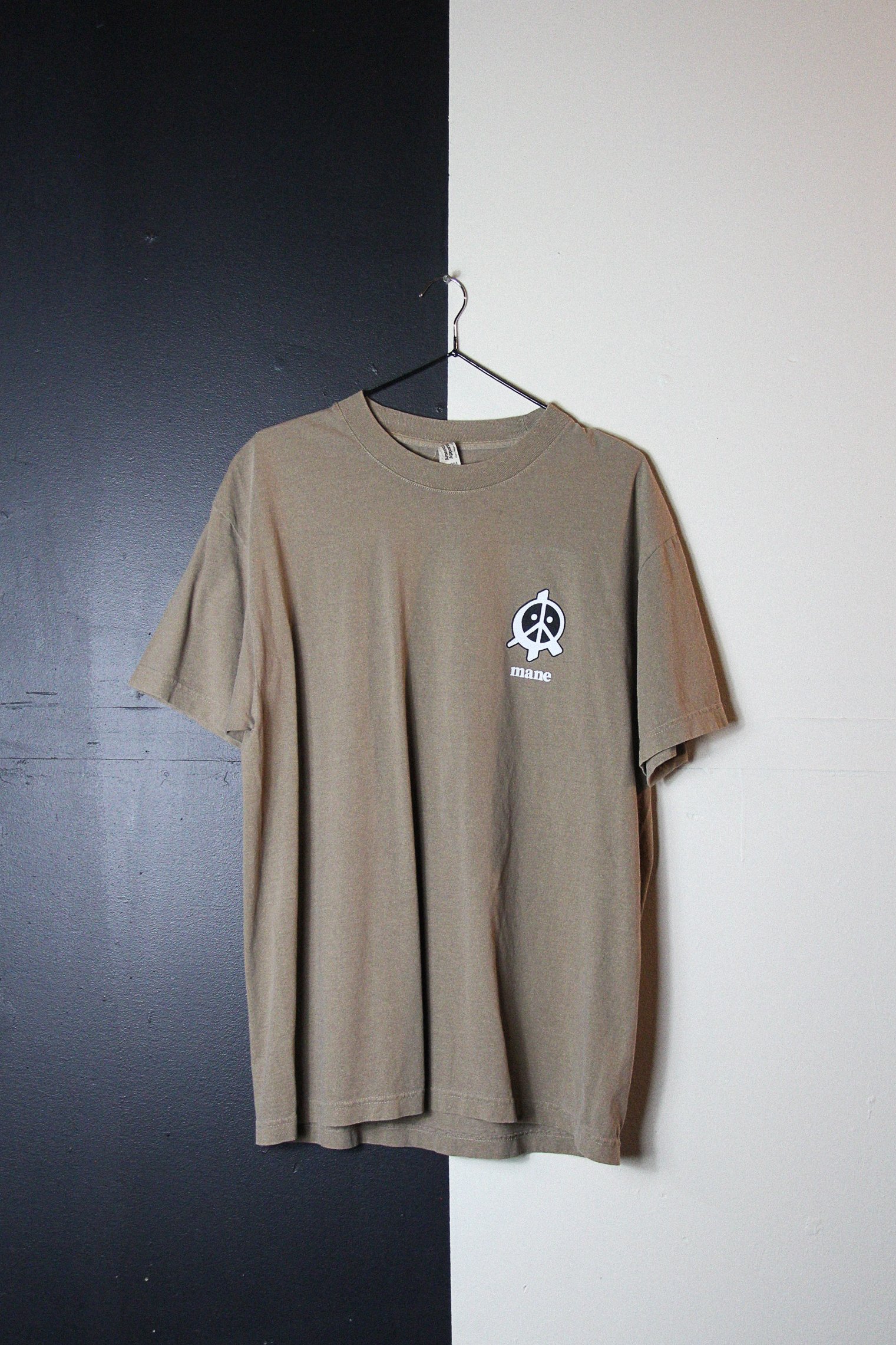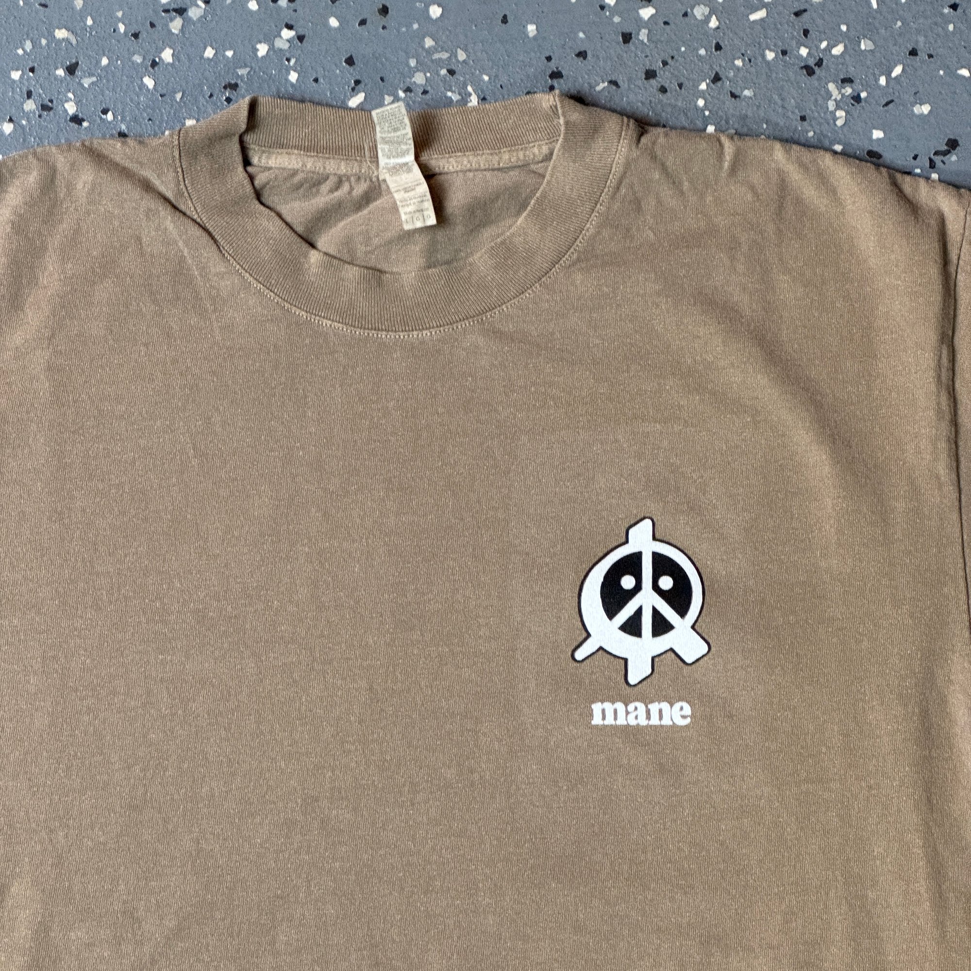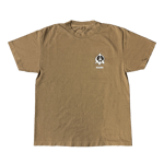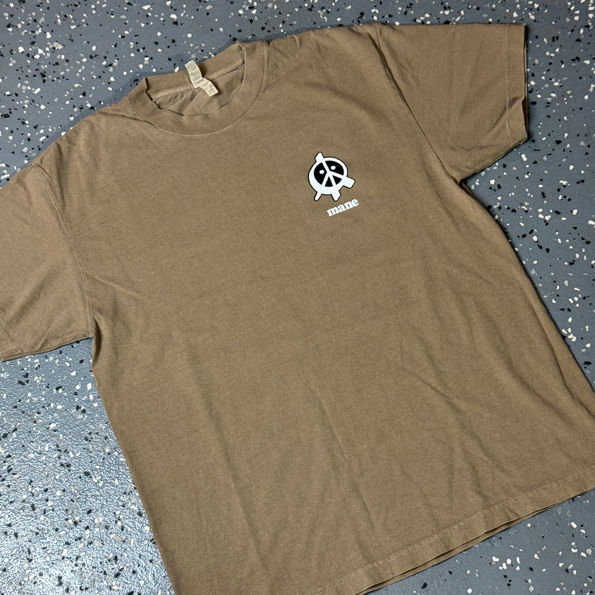 Black and White ink on garment washed brown heavyweight cotton tee.