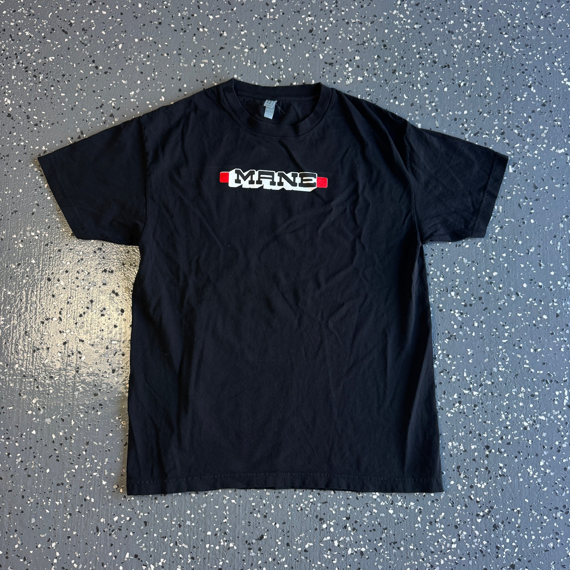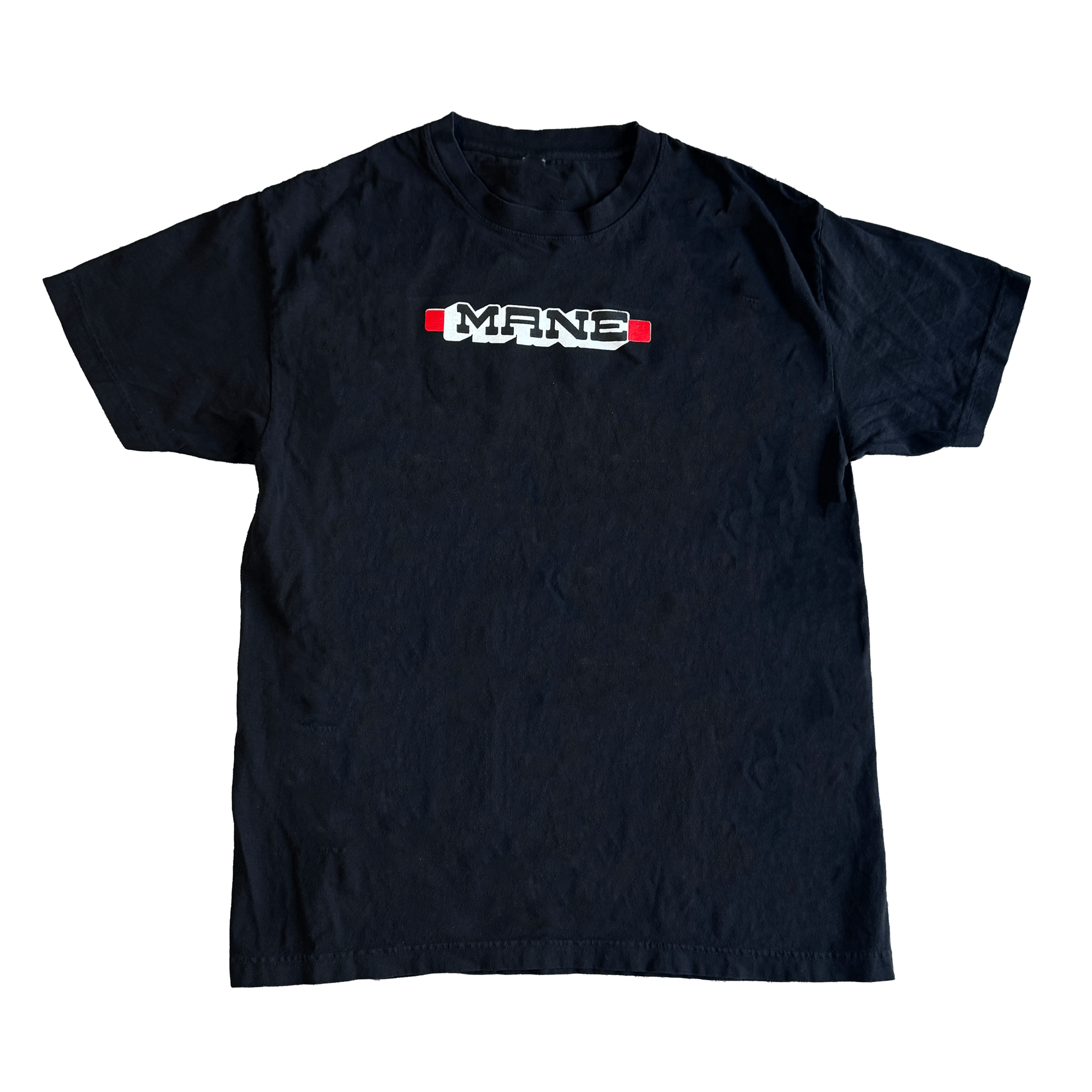 Black, White, & Red ink on black garment dyed heavyweight cotton tee.